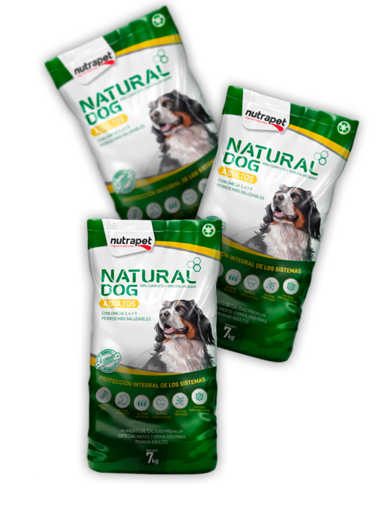 Natural dog posee Omega 3, 6 y 9, y una protección integral de los sistemas: Óseo, Digestivo, Epitelial, Circulatorio, Nervioso e Inmunológico.